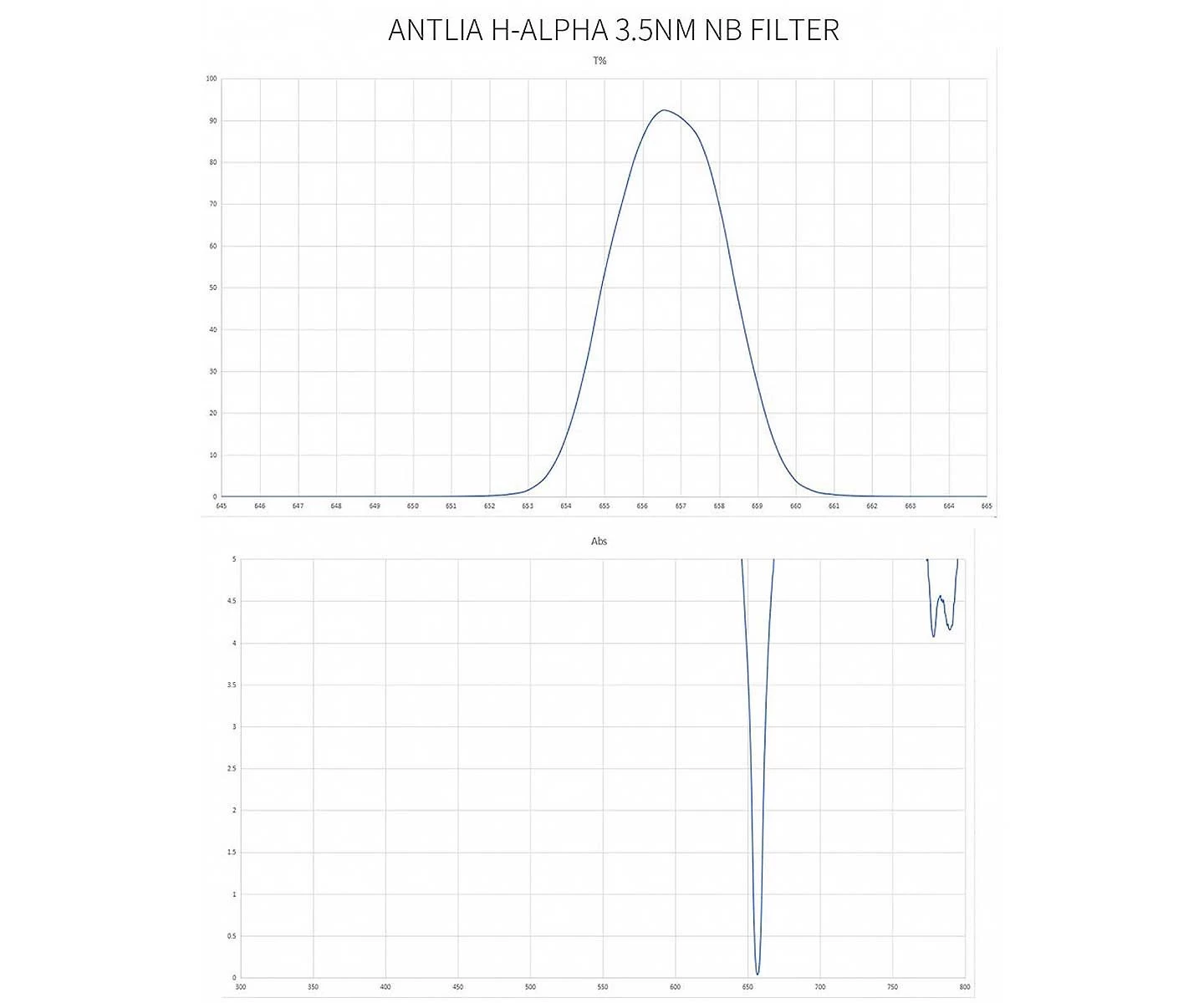 Az Antlia keskenysávú mélyégszűrők rendkívüli kontrasztot kínálnak, ezáltal az asztrofotós nagyon jó eredményt ér el még fényszennyezett városi ég alatt, vagy a holdfény hatása mellett is. Az Antlia H-Alfa Pro 3 nm keskenysávú szűrő a központi 1 nm-es tartományban (656.3 nm) több mint 88%-os áteresztést garantál, ezért a nagyon fényerős objektívek és távcsövek fotografikus használatához is tökéletesen passzol. Még extrém f/3 gyújtóarány mellett is csak minimális az átviteli veszteség.