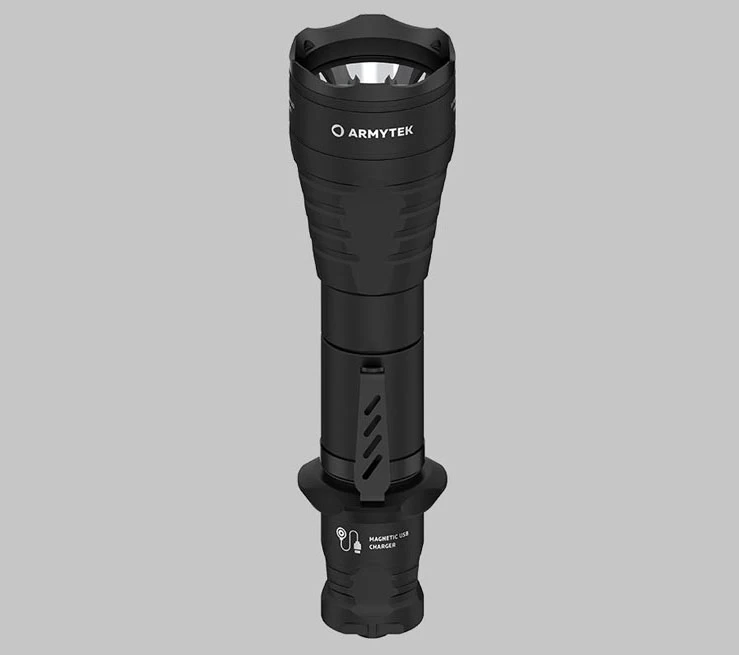 Az Armytek Predator Pro Magnet USB lámpát kifejezetten vadászat és taktikai igényekhez és igénybevételekhez tervezte a gyártó, hiszen a vadászlámpáknál a nagy hatótávolság és a szűk megvilágítási fénykúp elengedhetetlen a pontos célzáshoz. További fontos kritérium az alacsony súly, a csúszás menetes markolat, a hosszú működési idő és a lámpa végére tervezett taktikai kapcsológomb, amivel a lámpa kesztyűben is biztonságosan használható. A kapcsológomb lengőkapcsolóra is "cserélhető", amire főként vadászati használatkor van nagy szükség, azonban a régebbi modellekkel ellentétben nincs szükség a kapcsoló eltávolítására, hiszen a mágneses töltőhöz hasonlóan, közvetlenül a kapcsológombra rögzül a mágneses lengőkapcsoló, vagy a töltő vége. Ez a megoldás jóval gyorsabb bevethetőséget biztosít!