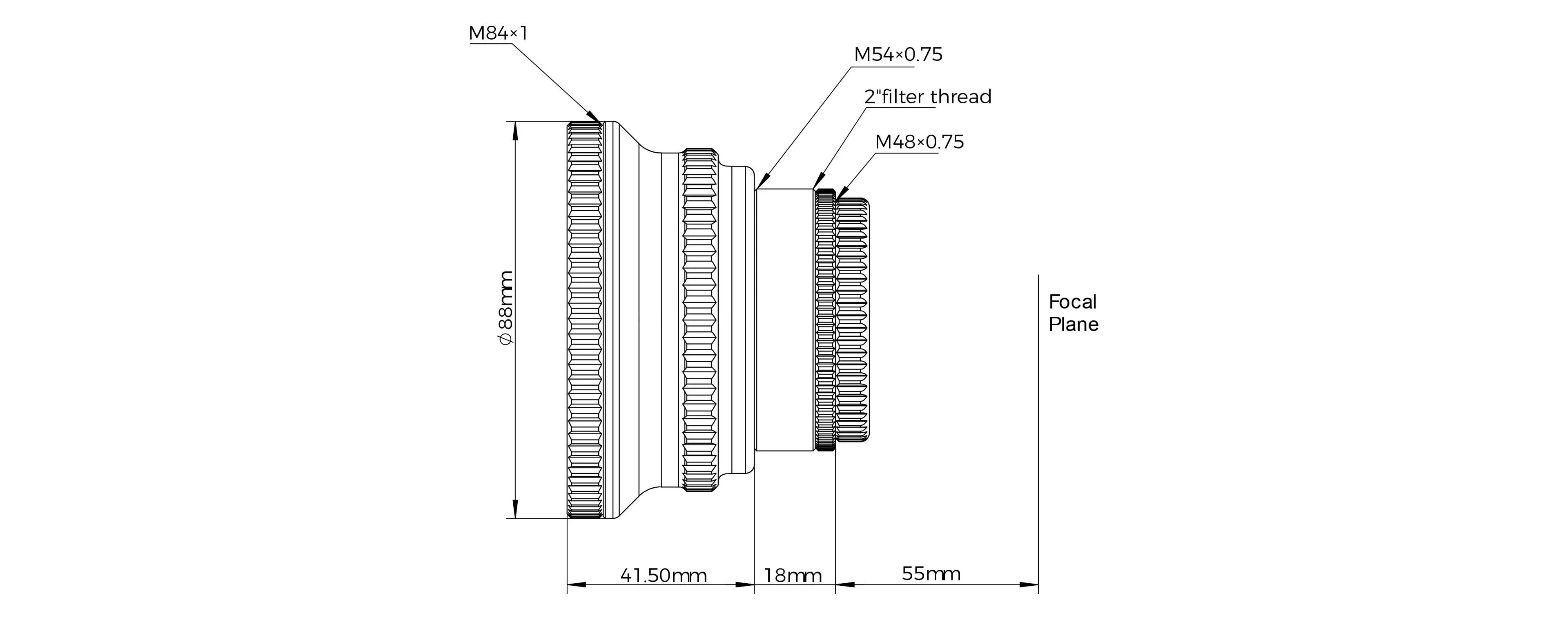 A fókuszreduktor 44 mm képátlóval rendelkezik, amely full-frame kamerák használatához is teljesen megfelelő. A kamera oldalon M48 és M54 meneteket találunk, amelyek lehetővé teszi a széles körű kompatibilitást a különböző rendszerekkel. M48 csatlakozás során a klasszikus 55 mm szenzortávolságot kapjuk, mely 73 mm-re növekszik M54 menet használatakor.
