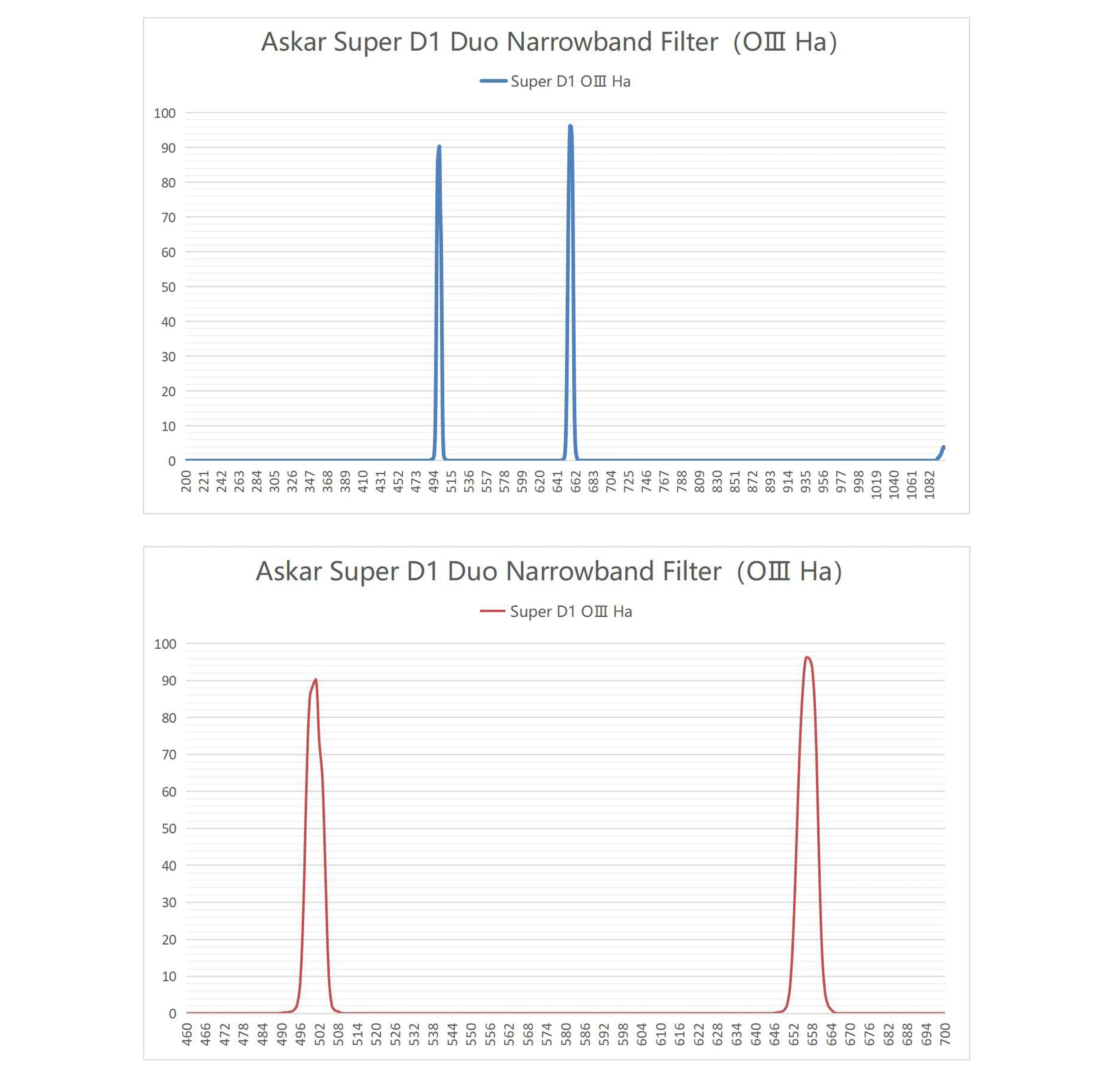 A H-alfa tartományban a szűrő 8.5 nm sávszélességgel dolgozik, ami a 656.6 nm-es hullámhosszon nyújt kiváló teljesítményt, kiemelve a hidrogén gazdag régiókat. Az OIII tartományban pedig 6.5 nm sávszélességével a 500.7 nm-es hullámhossz környékéről gyűjti az információt, lehetővé téve a planetáris ködök és más oxigén-gazdag objektumok részletes vizsgálatát.