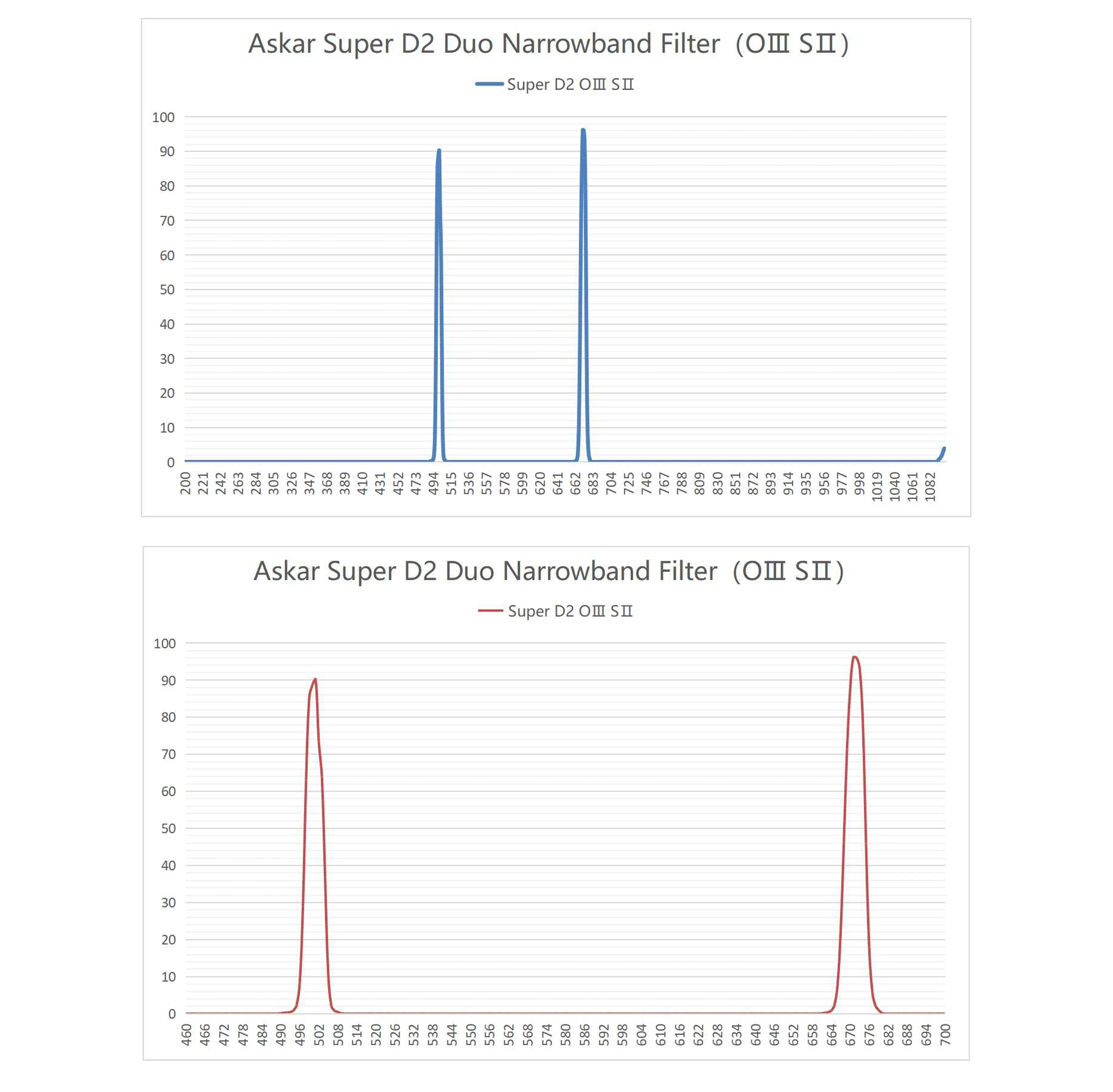 Az Askar Colour Magic C2 Duo Band szűrő két fő célpontja a H-alfa és az OIII emissziós vonalai, melyek a csillagközi gázködök és szupernóva-maradványok megfigyelésének elengedhetetlen elemei. A 2"-es méret lehetővé teszi a könnyű integrációt különféle asztrofotós rendszerekbe. Korszerű, ám nem túl fantáziadús, "Super" nevet viselő antireflexiós bevonata a lehető legkisebbre csökkenti a nem kívánt tükröződéseket.