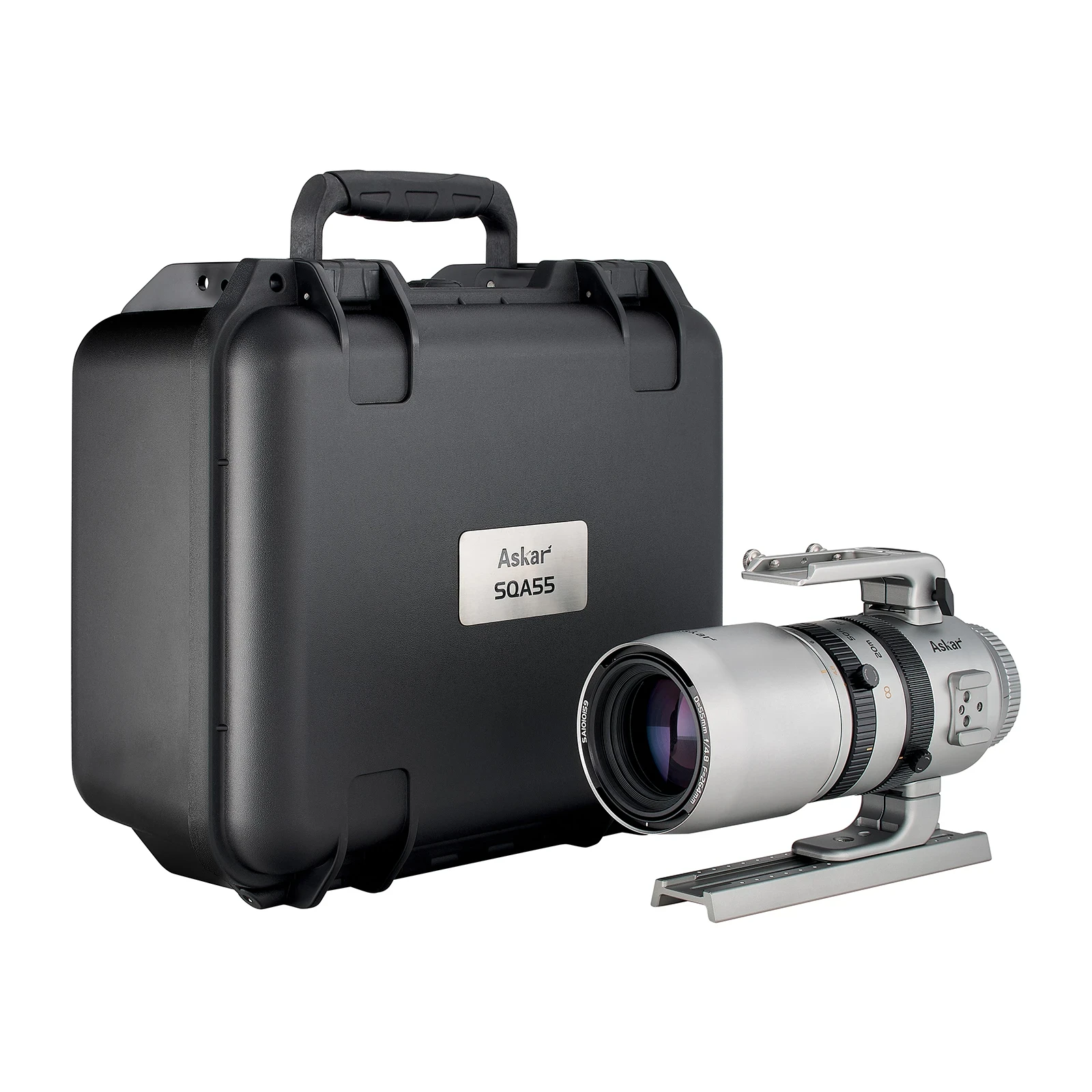 Az 55 mm átmérőjű optikával rendelkező Askar SQA55 55 mm APO tubus egy 264 mm fókuszú teleobjektív, amely extrém fényerős, f/4.8-as Petzval rendszerre épül. Az öttagú optikai rendszer SD glass és ED optikával biztosítja a teljes látómezőben pontszerű leképezést és színhiba mentes képet, az elkészült felvételek így rendkívül élesek és részletgazdagok. A Petzval felépítésnek köszönhetően nem kell számolgatni a backfocus-t.
