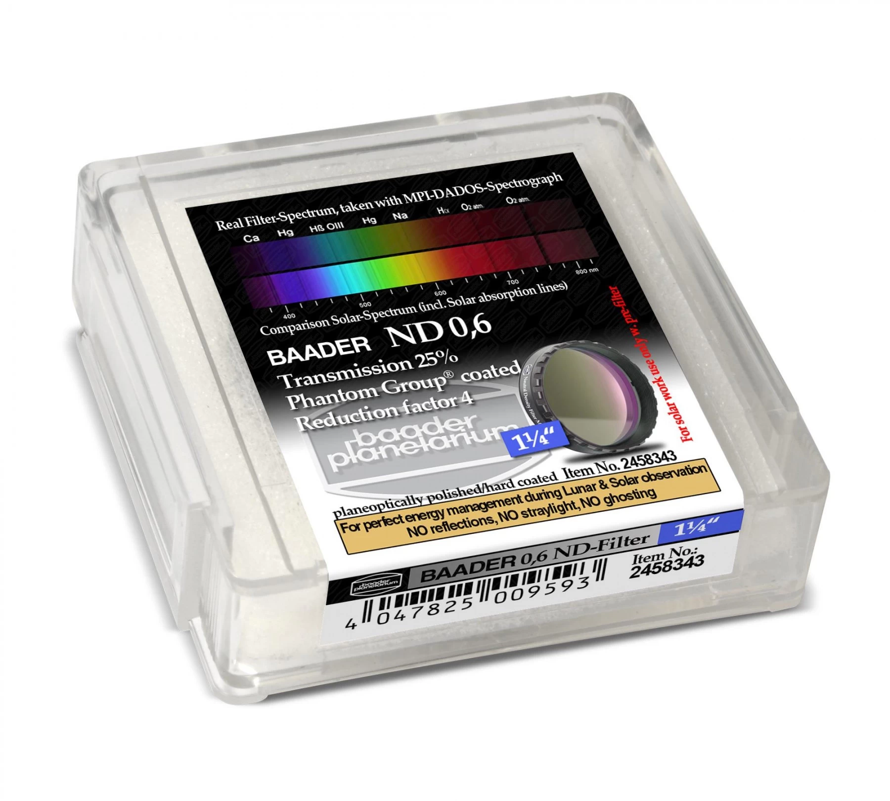A Baader neutrális szűrőit a legmagasabb optikai minőség jellemzi: precízen megmunkált üveganyaguk a lehető legkisebb torzítást, tükröződést viszi a képbe, ezért az legigényeseb megfigyelőknek ajánljuk.