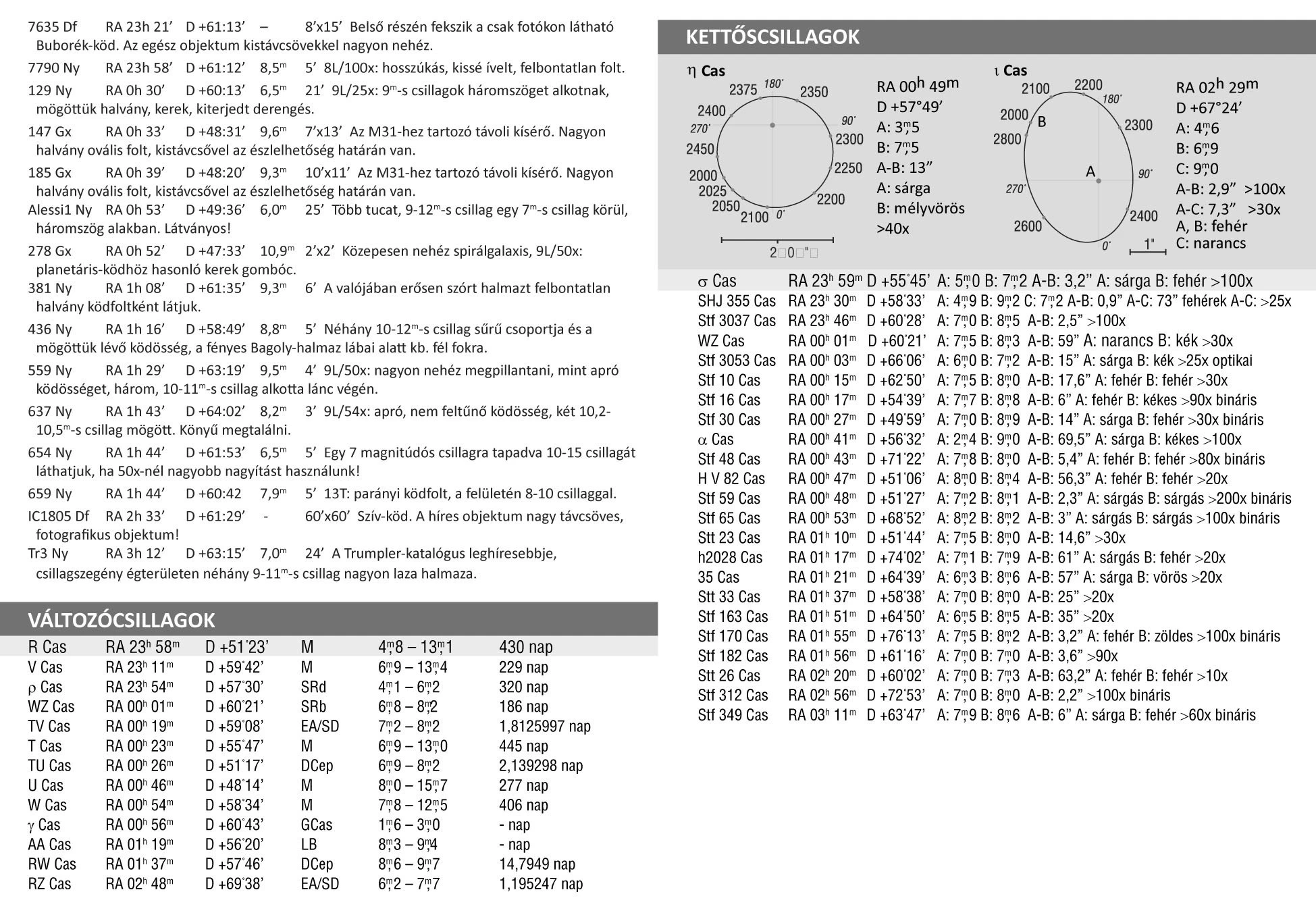 A térképlapok melletti oldalak az adott égterület legfontosabb, legizgalmasabb látnivalóiról közölnek kistávcsővel készült rajzokat és a megfigyelésükhöz kedvet csináló adatokat, részlettérképeket. A bevezetőben hasznos tanácsokat kapunk a megfigyelésekhez és a távcső használatához.