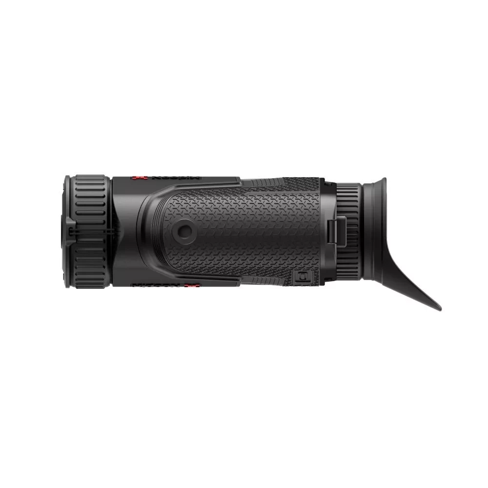 A készülék F0.9 fényerejű optikája majd 20%-kal több fényt gyűjt mint a piacon elterjedt F1.0-es (ami szintén nagyon fényerősnek számít) rendszerű hőkamerák. A fix fókuszú objektív alapesetben 2x nagyítással rendelkezik, amelyet digitálisan 8x-ig növelhetünk. Ember-alak észlelésére, az érzékeny 18 mk-es hőérzékelő szenzor, egészen 980 méter távolságig ad lehetőséget. Ennél a modellnél már manuális élességállító gyűrűt is találunk az optikán.