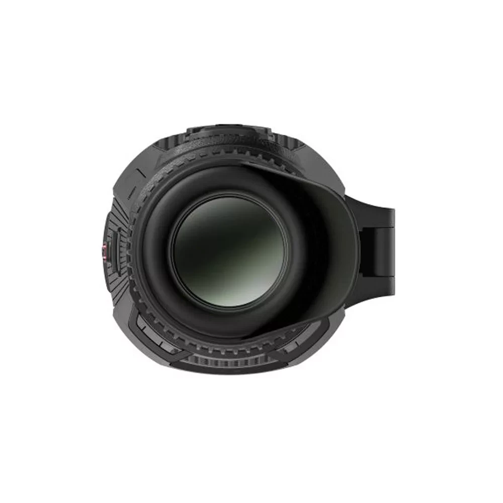 A készülék F0.9 fényerejű optikája majd 20%-kal több fényt gyűjt mint a piacon elterjedt F1.0-es (ami szintén nagyon fényerősnek számít) rendszerű hőkameráké. A fix fókuszú objektív alapesetben 3x nagyítással rendelkezik, amelyet digitálisan 28x-ig növelhetünk. Ekkora nagyításhoz már érdemes fotóállványt használni. Ember-alak észlelésére, az extra érzékenységű 14 mk-es hőérzékelő szenzor, egészen 1800 méter távolságig ad lehetőséget. Ennél a modellnél is manuális élességállító gyűrűt találunk az optikán.