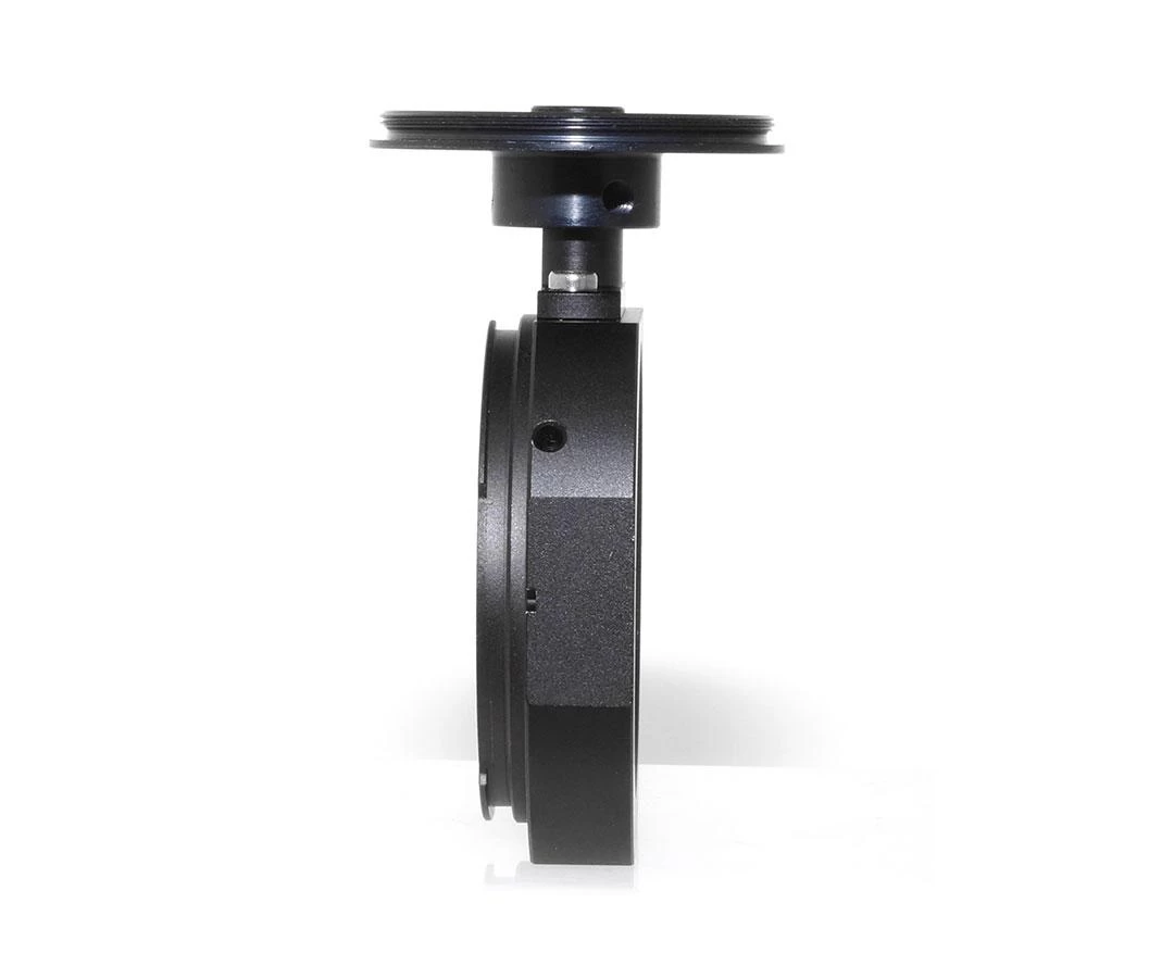 A vezetőkamera illesztéséhez T2 menetet találunk az eszközön. Tapasztalatunk szerint vezetőkamera esetében kb. 15 mm ideális backfocus-szal érdemes számolni a megfelelő rögzítés érdekében. Ha ennél kb. 3-4 mm-rel nagyobb ez az érték, akkor a vezetőkamerát nem lehet annyira "előre" csúsztatni, hogy éles képet kapjunk. Rövidebb backfocus érték esetén T2 hosszabbító toldatot javasolt használni, különben túl távolra kerülne a rögzítés. (pl. ha a kamera backfocus értéke 12.5 mm, akkor 3 mm hosszú T2 hosszabbító toldatot javaslunk.)