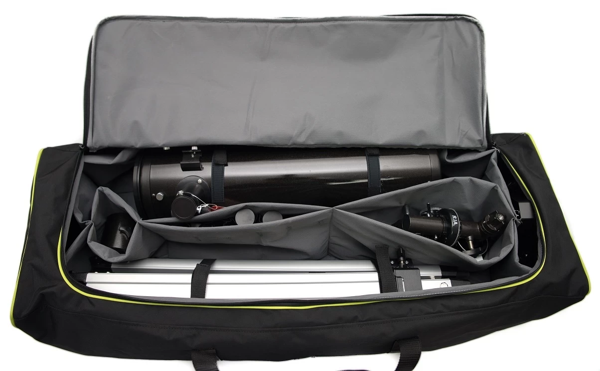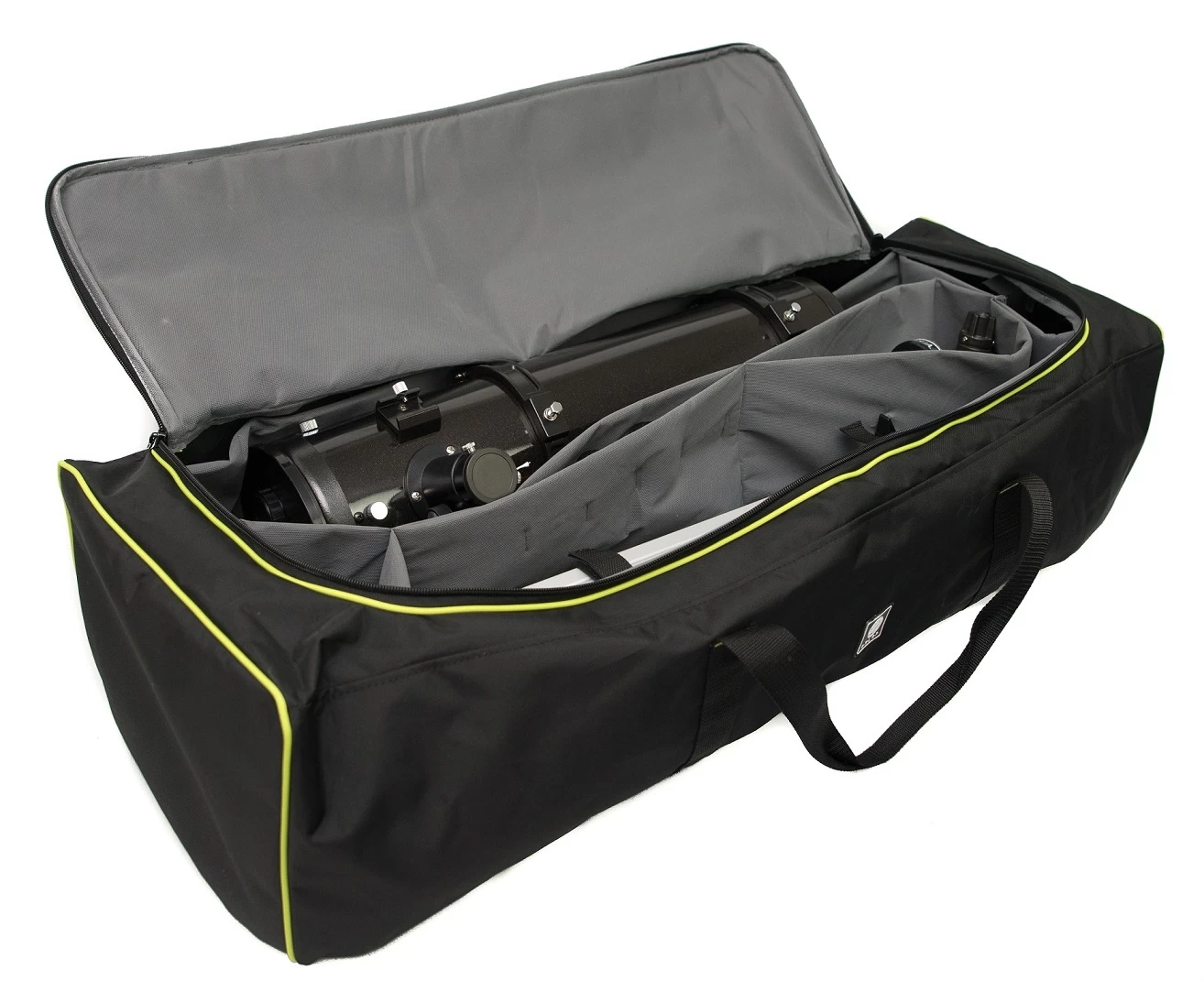 Ez az Oklop gyártmányú bélelt hordtáska ideális választás komplett csillagászati távcső tubusok és mechanikájuk együttes szállítására. Ajánlott max. 90/900 refraktor és max. 130/900 newton távcső szállítására EQ-2 mechanikával együtt. Tapasztalatunk szerint a 120/600 AZ-4-es alumínium állvánnyal szintén elhelyezhető a táskában.