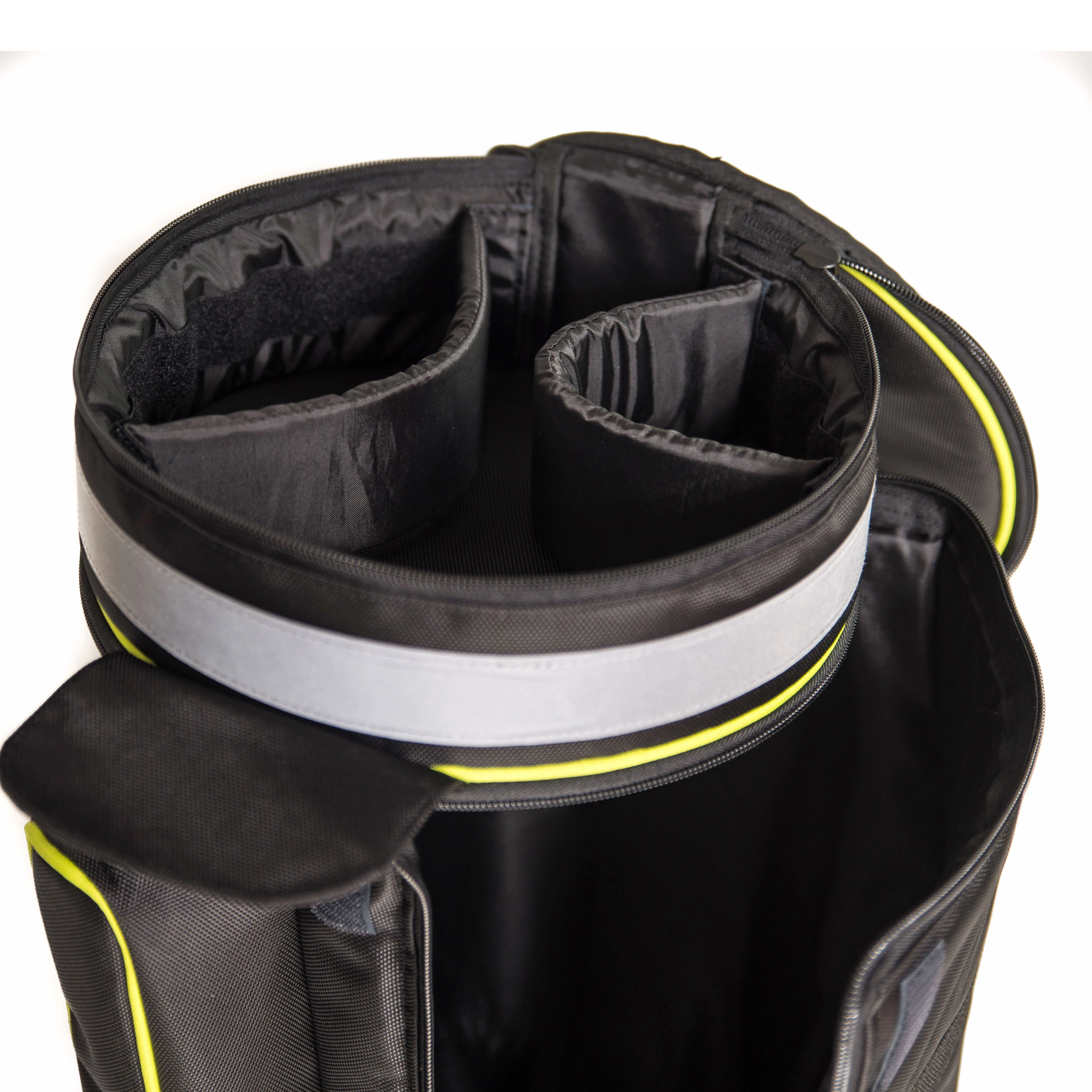 A bélés elnyeli a kisebb ütődések hatásait és hőszigetelő hatással is rendelkezik. A tároló zsebeibe a kiegészítőknek is marad hely.