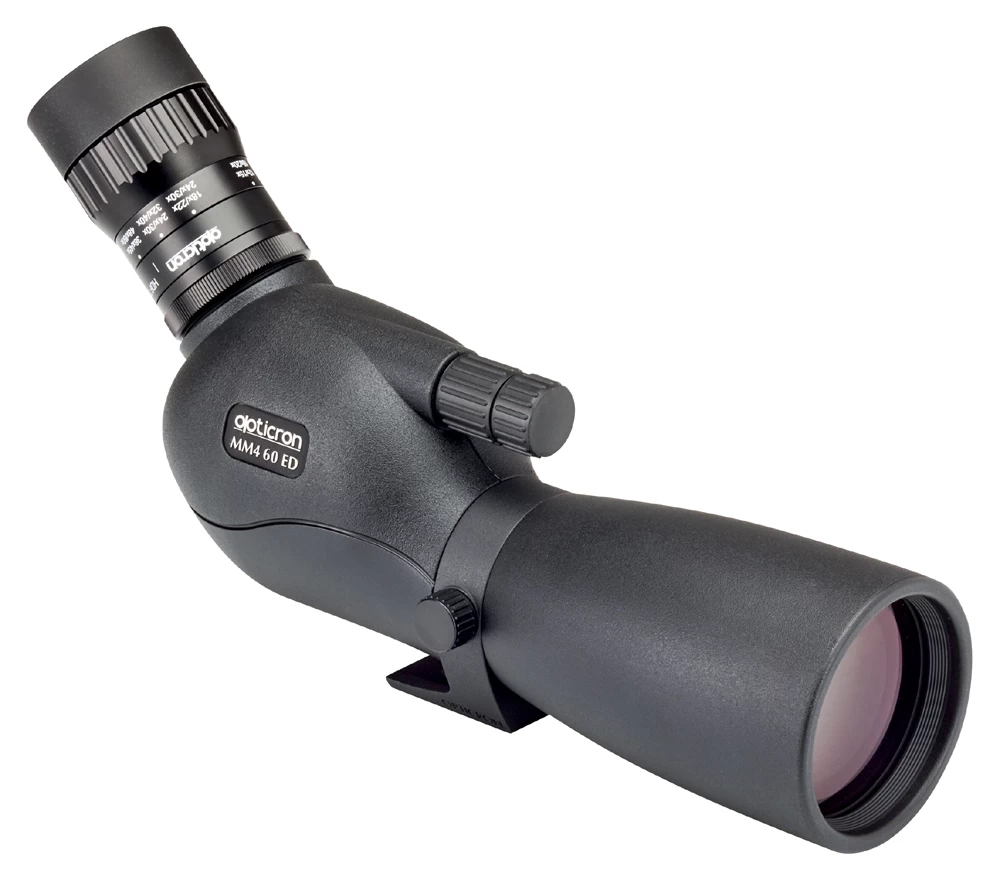 Az Opticron MM4 60 GA ED spektív a gyár új generációs eszközeinél a minél kisebb méretre, fényesebb, ragyogóbb és élesebb képalkotásra tették a legnagyobb hangsúlyt, megtartva a tradicionálisan megbízható igényes kivitelt. A kisebb MM4 50 GA ED típushoz képest mintegy 44%-nagyobb felülete még világosabb képet biztosít amire nagyobb nagyításokon, illetve kedvezőtlenebb fényviszonyok között lehet szükség. Az Opticron MM4 60 GA ED egyenes és 45%-os változata Ideális választás választás sportlövészeknek, íjászoknak a céltárgy megtekintésére vagy egyszerűen az erkélyről a környező panorámát, madárvilágot vizsgálni.