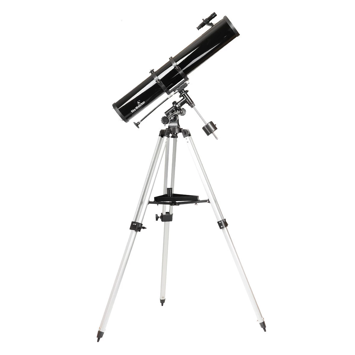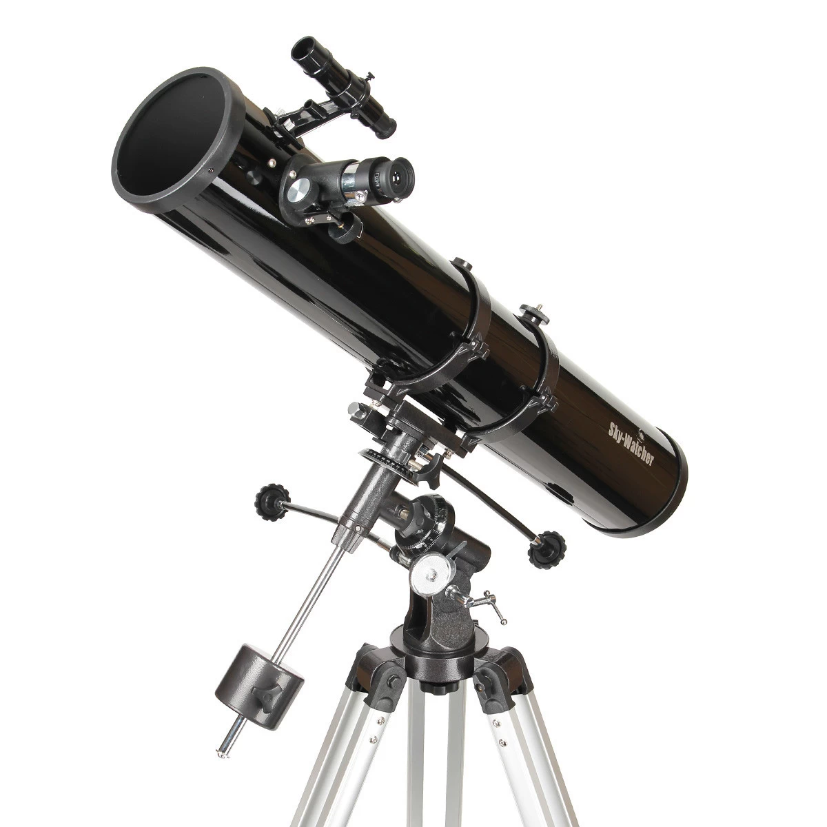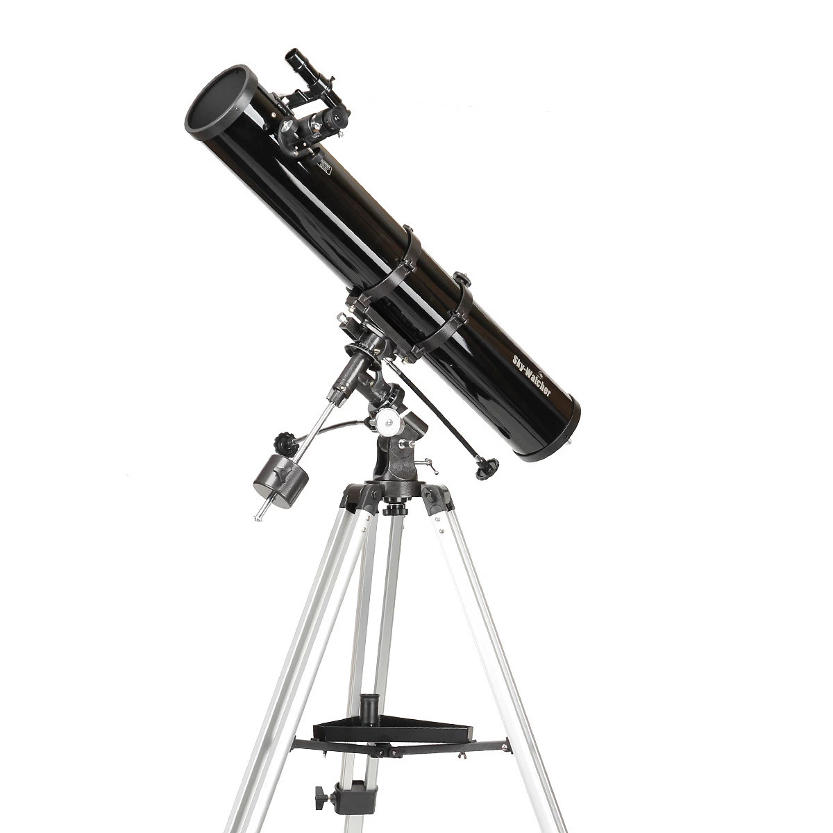 A SkyWatcher 114/900 Newton távcsövet két kiszerelésben forgalmazzuk: EQ-1 és EQ-2 mechanikával. Utóbbi nagyobb teherbírású, így kevéssé remeg a használat során. Mindkettő mechanika változat finommozgatással ellátott, óragéppel bővíthető. Az okulártálcára számos kiegészítőt helyezhetünk, akár az észlelőteánkat is. A kihúzható alumíniumláb pedig testmagasságunkhoz igazítható.