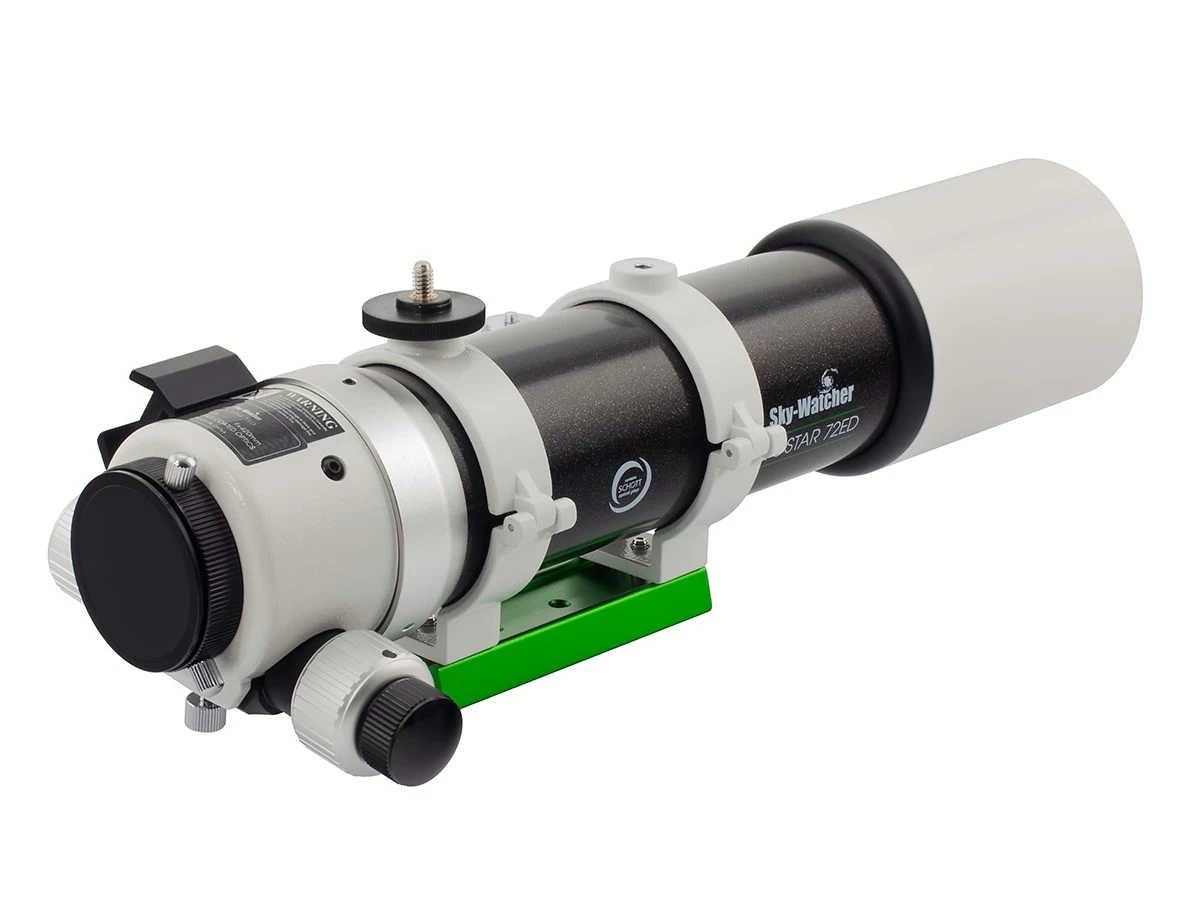 A SkyWatcher Evostar ED 72/420 DS-Pro tubus precíz 2"-es, Crayford-kihuzattal szerelt, mely 1:10 áttételű mikrofókuszírozóval is ellátott. A 2"/1.25" adapter nem az alapcsomag része, ezért 1.25"-es kiegészítők használatához ezt külön meg vásárolni. A tubusgyűrű és prizmasín alaptartozék! A távcsőtubus praktikus alumínium kofferben érkezik.