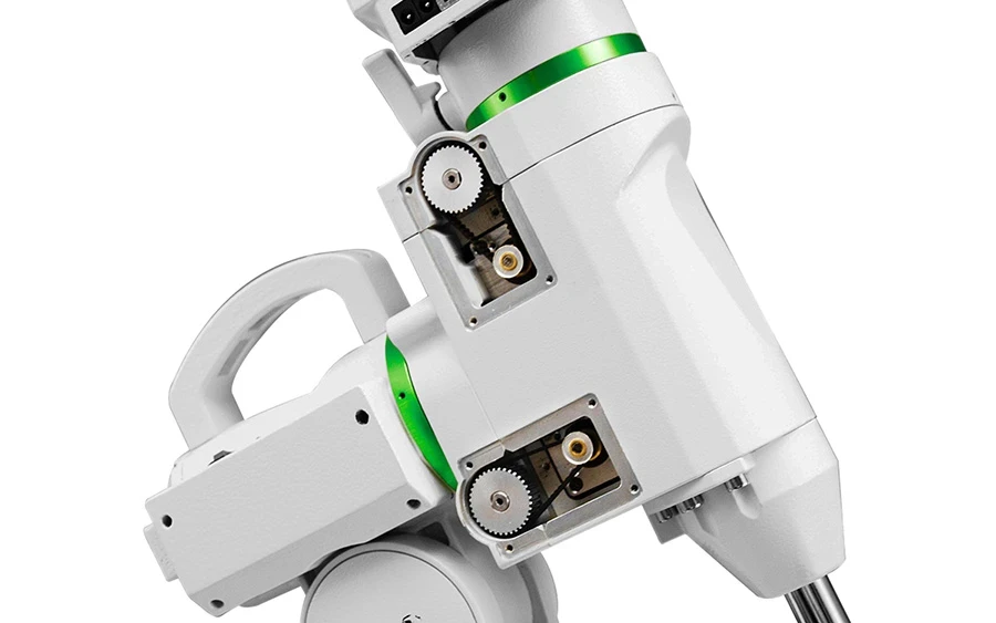 A SkyWatcher HEQ-5-R Pro Goto mechanika a korábbi HEQ5 Pro Goto továbbfejlesztett változata, amelyet kifejezetten az igényes csillagászati megfigyelésekhez és asztrofotózáshoz terveztek. Ez a mechanika megnövelt stabilitást és nagyobb, 15 kg teherbírást kínál, köszönhetően a nagyobb csigakeréknek, amely biztosítja a precízebb és pontosabb követést.
