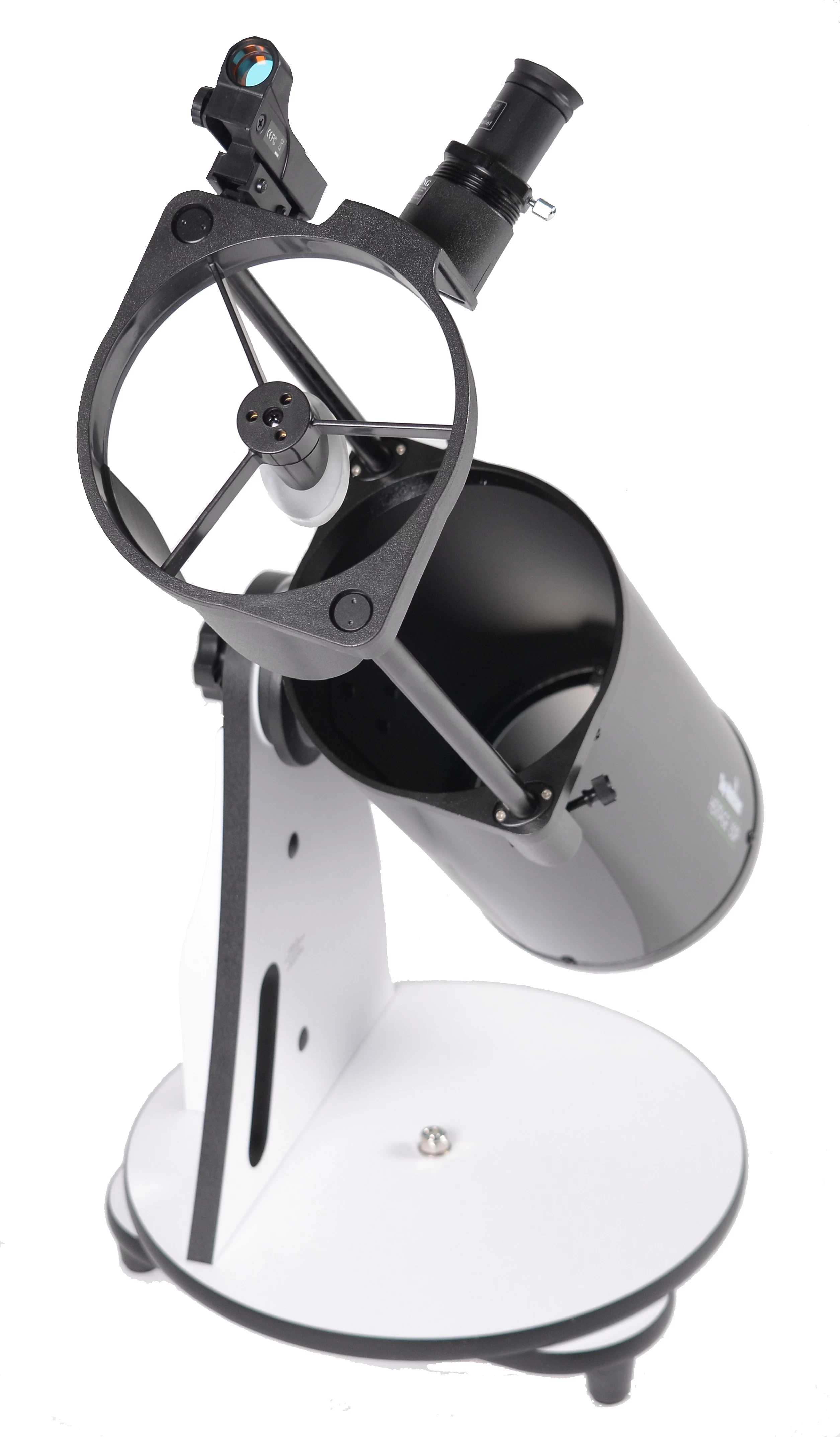 A klasszikus dobson állvány előnye nem csupán a hordozhatóság, hanem a nagyfokú stabilitás is. Az egyszerűbb ekvatoriális állványokra szerelt kezdő távcsövekkel ellentétben a kép még nagy nagyításokon sem remeg. A távcső teljes tömege (állvány plusz tubus) 6 kilogramm, így még kézben is könnyedén átvihetjük a kert egyik végéből a másikba. A távcsőhöz egy 25 mm-es egy 10 mm-es bárium okulárt adunk, amelyek 30x, illetve 75x-ös nagyítást adnak. Természetesen további okulárok vagy egy Barlow-lencse vásárlásával a nagyítás tartomány kibővíthető, akár 300x-os nagyításig.