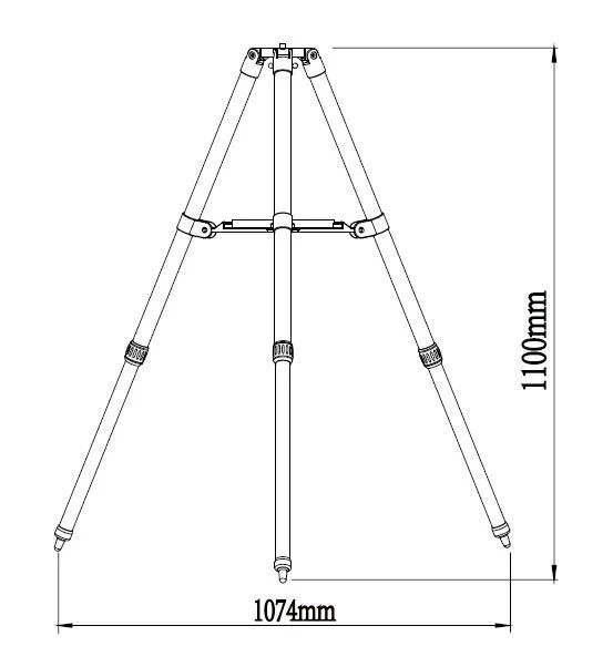 A SkyWatcher StarAdventurer háromláb csupán 1.8 kg súlyú. A kihúzható lábaknak köszönhetően magassága 72 cm és 122 cm között állítható.