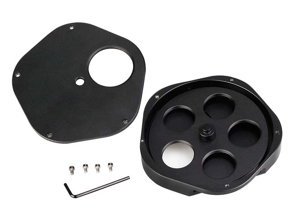 Az 5 darab 1.25"-os szűrőmenetű szűrőváltóban a szűrők gyorsan válthatók. Váltáskor a jól érezhető a kattanás jelzik, hogy valamelyik másik szűrőt használunk. Az egyes szűrőváltóhelyeket fehér számok jelzik, ezáltal elég az észlelőlámpa fénye a használatához.