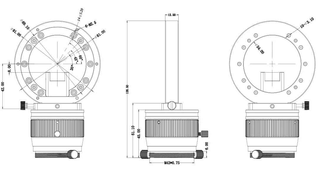 - Távcső felőli oldalon M54, M48, M42 menettel csatlakoztatható (az adapterek az alapcsomag részét képezik).
