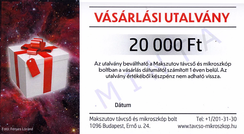 Nem tudja milyen távcsőnek, mikroszkópnak örülne az akinek az ajándékot szánja?! Ajándékozzon vásárlási utalványt és ezt döntse el a megajándékozott! Az utalvány beváltható 1 éven keresztül tetszőleges termékre.