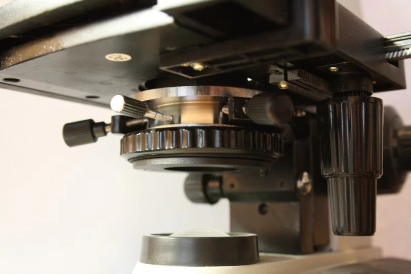 A "normál" fókuszírozó mellett 0.1 mm-es lépésközű finomfókuszírozót is találunk, hogy a kapott kép mindig borotvaélesre állítható legyen. A mechanikus tárgyasztal finommozgatással ellátott és 0.1 mm-es precizitással állítható - mindez szükségtelenné teszi, hogy a preparátumhoz kézzel hozzá kelljen nyúlni, berázva ezáltal a mikroszkópot. A mozgó alkatrészek mentesek mindenféle holtjátéktól, ami kényelmessé teszi a munkát.