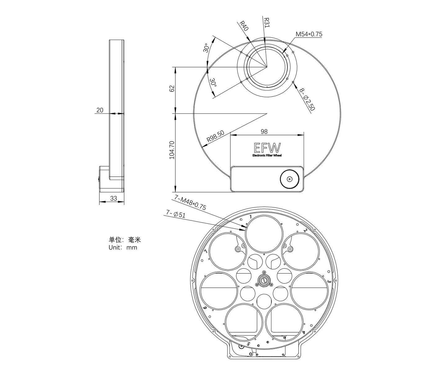 A ZWO motorizált szűrőváltó kiváló minőségű alumínium vázban kapott helyet, szélessége mindössze 20 mm, súlya 650 gramm. Vékony kivitelének köszönhetően meglepően közel tehető a kamera érzékelőjéhez, ezáltal még fényerős távcsövek esetén sem kell vignettációval számolni.