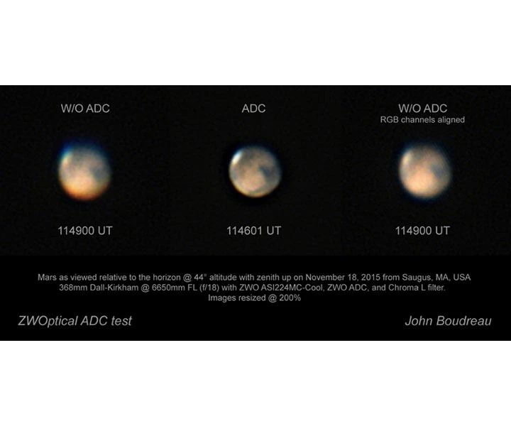 A ZWO légköri diszperzió-korrektor asztrofotózáshoz készült képkorrekciós optikai eszköz, elsősorban a nagy felbontású bolygó- és holdfotózáshoz ajánlott. Segítségével a légkör eltérő sűrűségű rétegeiben fellépő prizmahatást (égitestekről érkező fény elemeire bontása) küszöbölhetjük ki - ez a hatás aközben lép fel, amíg az égitestről bejövő fény áthalad a Föld légkörén és eljut a megfigyelőig, illetve a kameráig. A színi hiba a gyakorlatban úgy mutatkozik meg, hogy a lefotózott égitest peremeinél piros, avagy kékes szín mutatkozik a felvételen. Monokróm kamerákkal fotózva pedig elmosódott bolygóképet kapunk ezen hiba miatt.